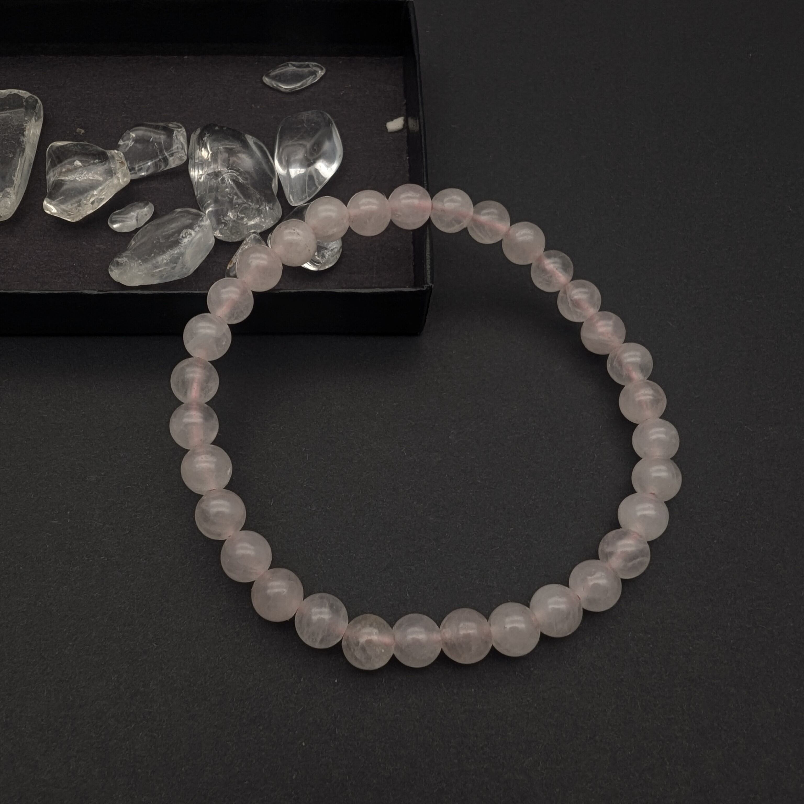 ローズクォーツの柔らかなピンク色が心を癒し、穏やかな印象を与えます。サイズや形状は多様なバリエーションをご用意しておりますので、お好みに合わせてお選びいただけます。6mm/女性標準16cm/男性標準18cm