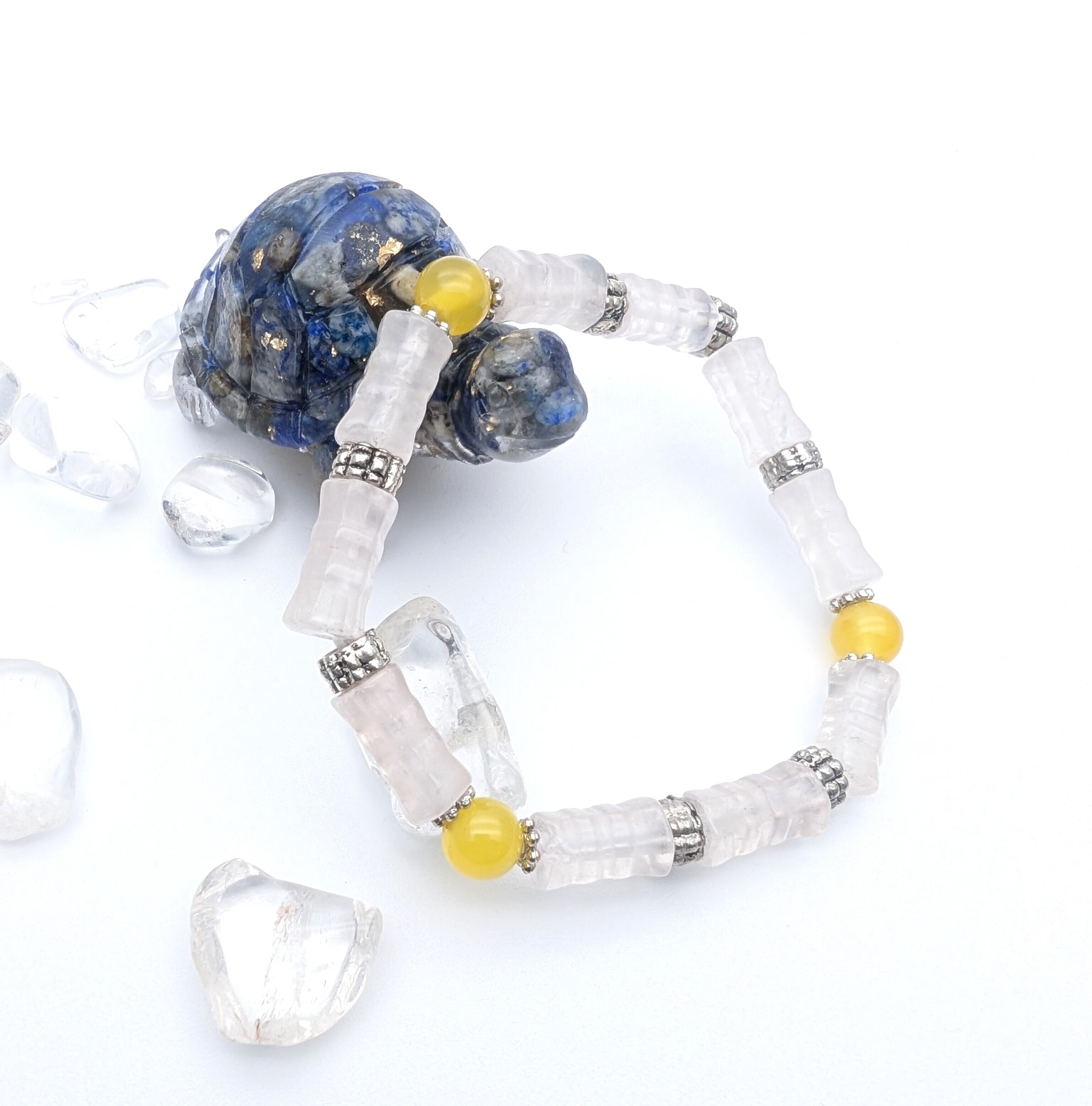 厳選された高品質なローズクォーツと黄瑪瑙を使用しており、その美しさと情緒的なエネルギーを最大限に引き出しています。耐久性に優れ、長くご愛用いただける商品に仕上げています。