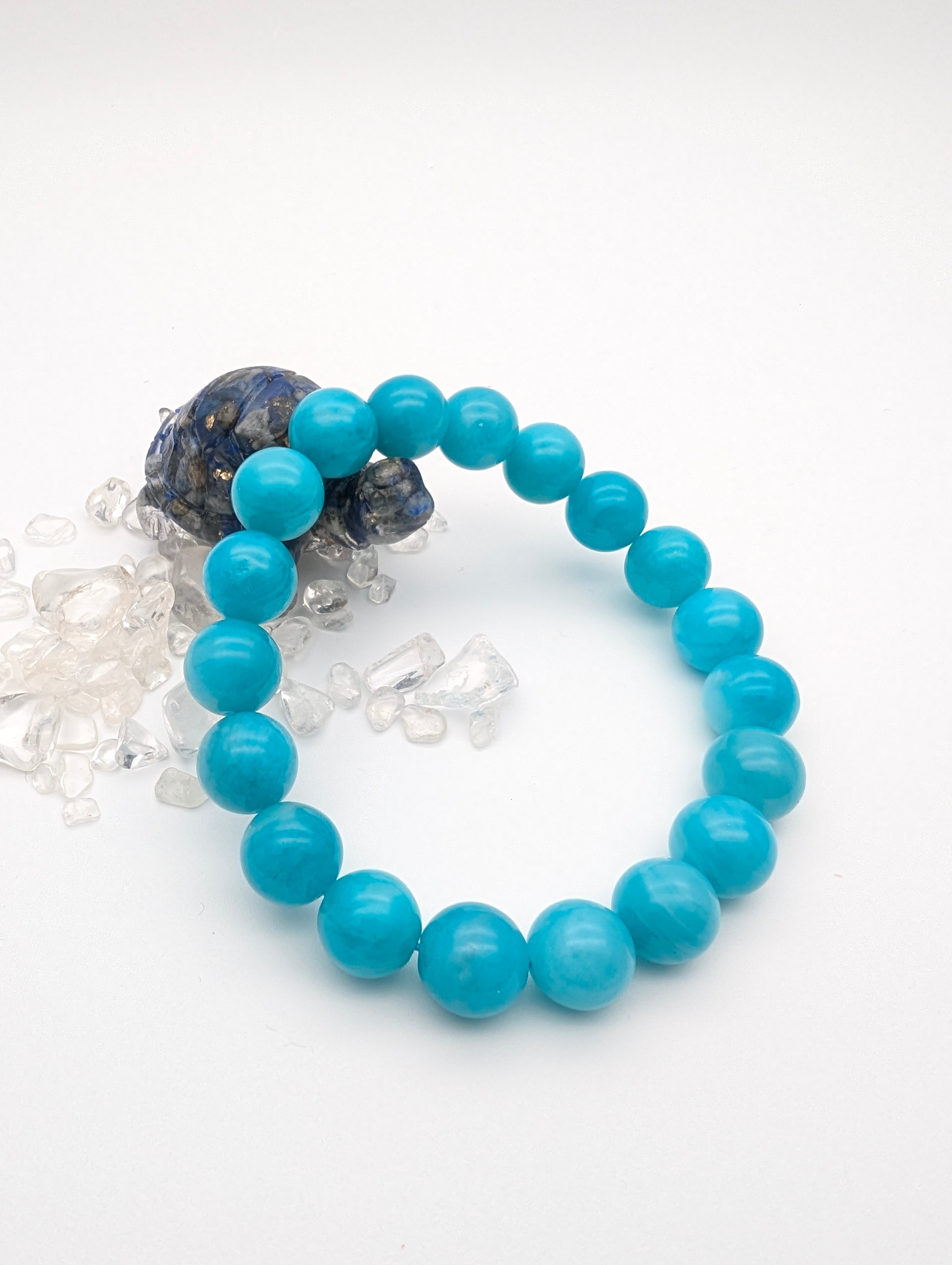 アイス アマゾナイトは、ブルーグリーンの独特の輝きが魅力的で、どの角度から見ても美しさを楽しむことができます。サイズは現状12-13mm/17-18cmとなります。品薄商品のため、他サイズご希望の方は一度当店までご相談ください。入荷次第対応可能となります。