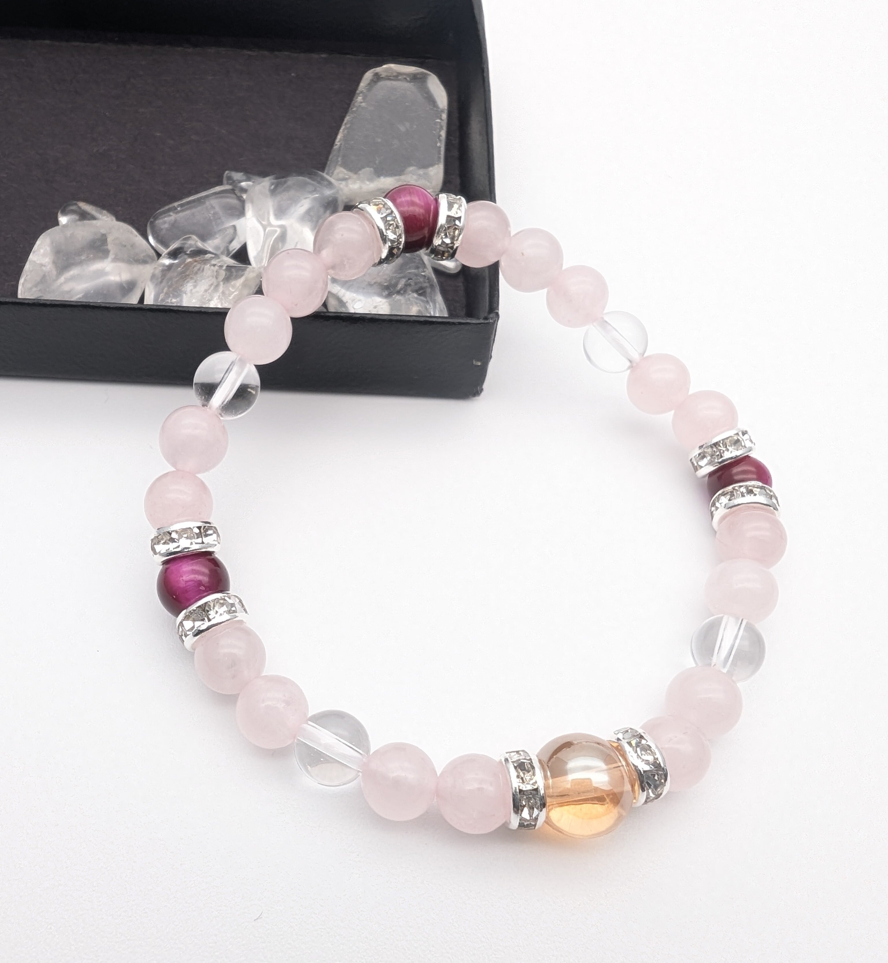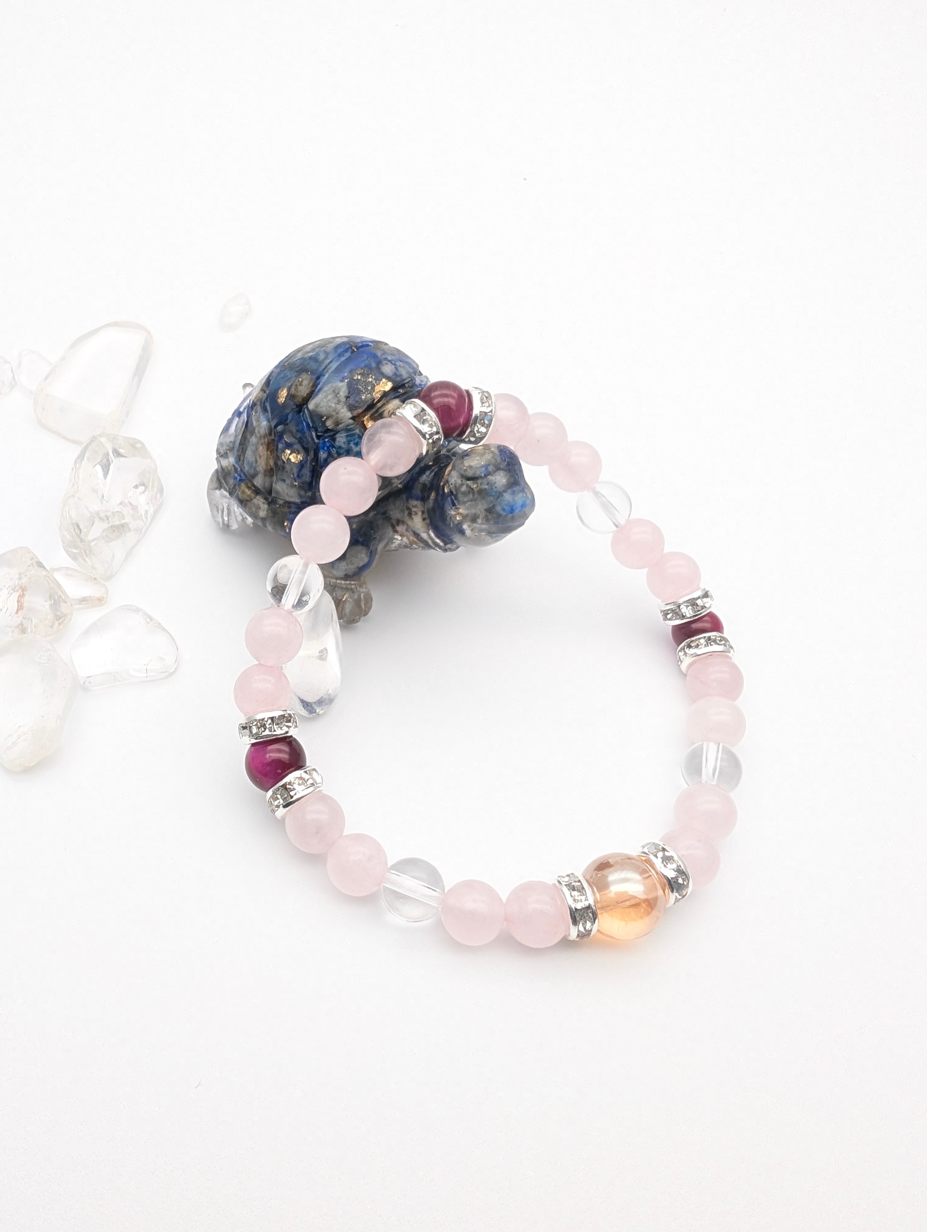 ローズクォーツは心の痛みを和らげ、愛に満ちた空間を作り出すことで、心に癒しと安らぎを与えてくれます。 このブレスレットを身に着けることで、ポジティブな気持ちを高め、日常のストレスを軽減し、心が豊かに満たされる体験が期待できます。